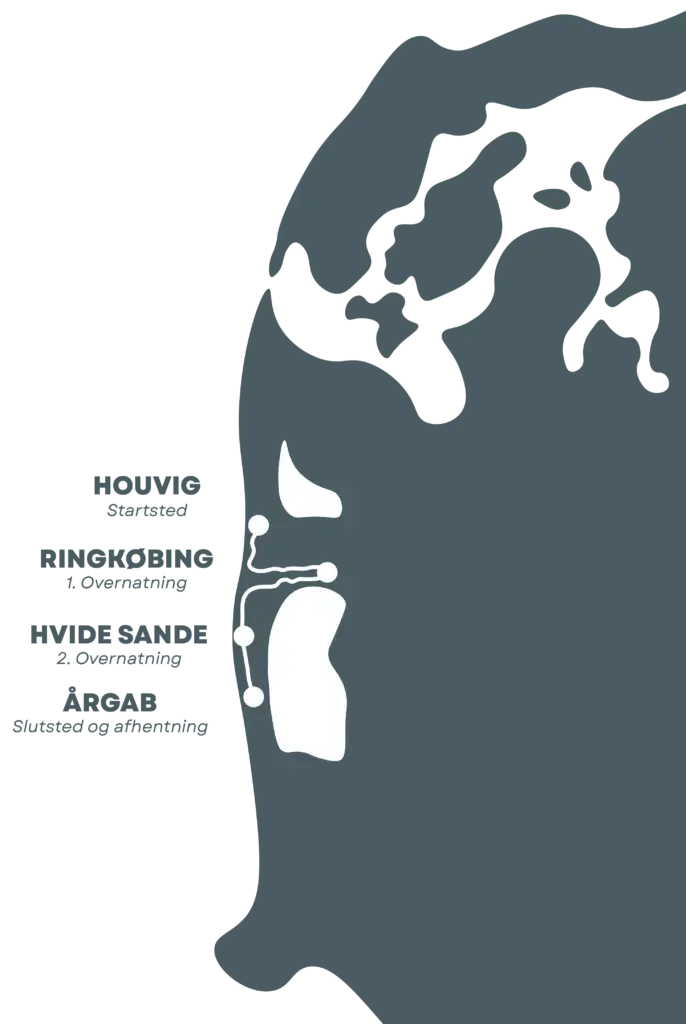 Undervejs bor du komfortabelt på Klim Camping og Rønnes Hotel, smukt placeret mellem hav og klitplantage. Her kan du slappe af efter dagens vandring og lade roen falde på, inden næste dags eventyr venter.